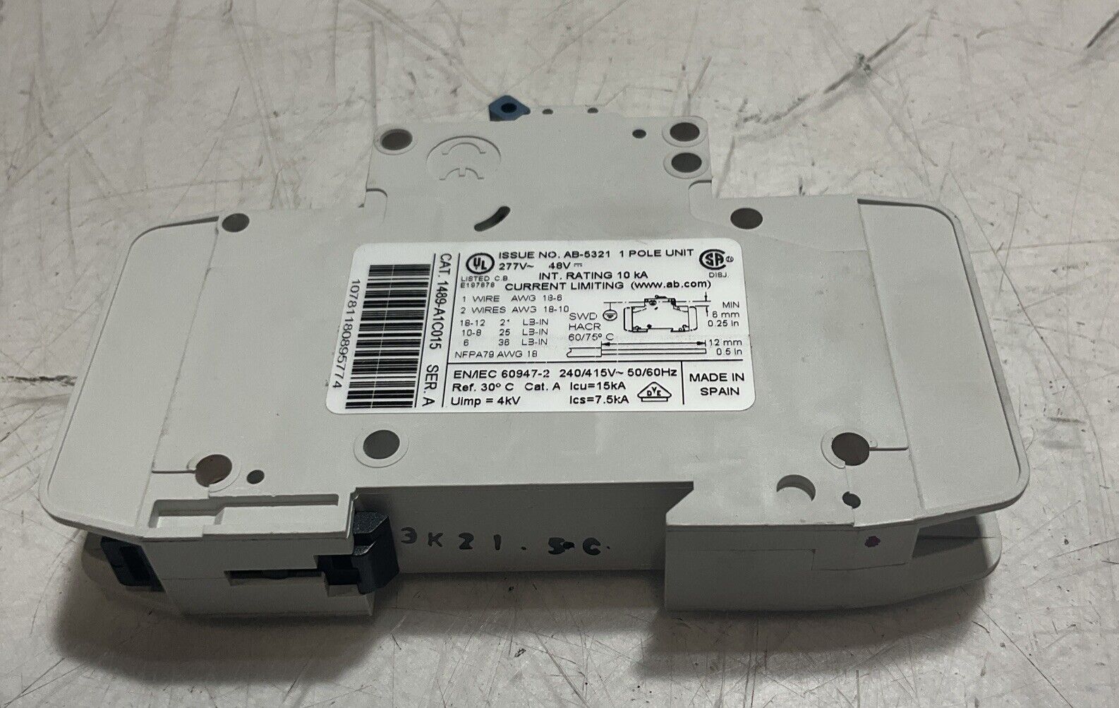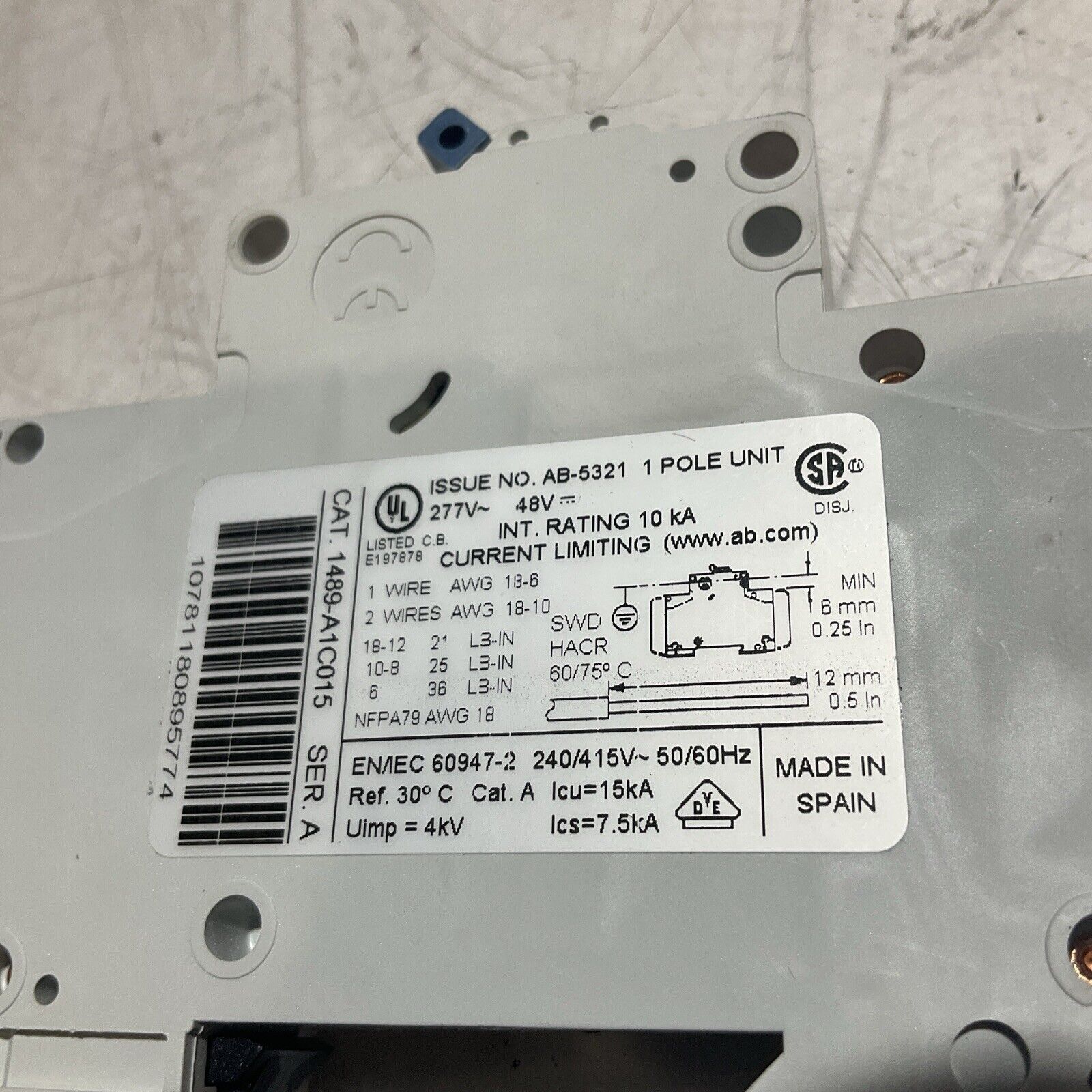 A-B 1489-A MINIATURE CIRCUIT BREAKER 1 POLE U3S
