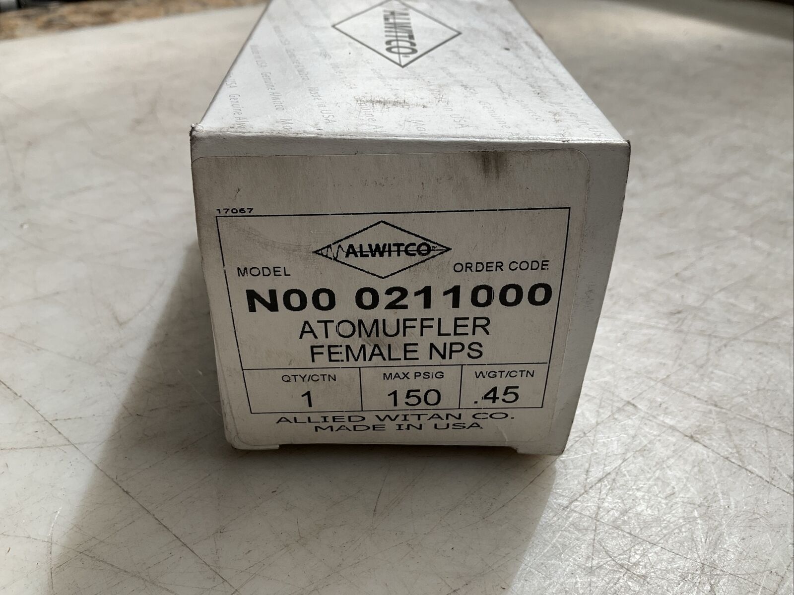ALWITCO N00 0211000 AIR EXHAUST MUFFLER FEMALE NPS 150PSIG .45WGT/CTN N3M.