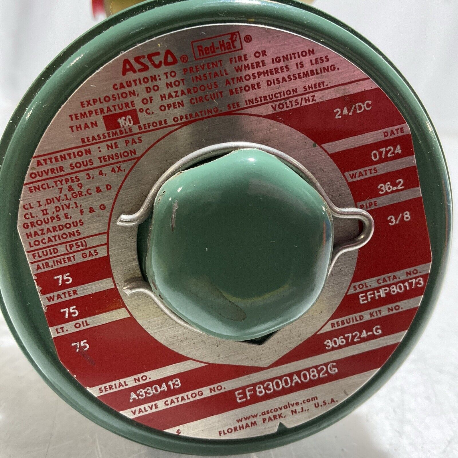 ASCO RED-HAT EF8300A082G- EFHP801173 GENERAL SOLENOID CONTROL VALVE 24/DC U3S