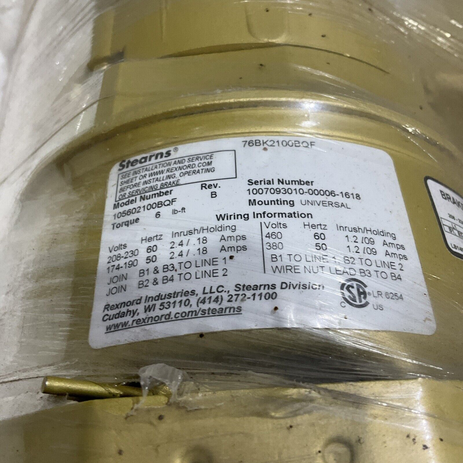 BALDOR RELIANCE VEBM3546 SUPER E BRAKE MOTOR 1HP 230/460 3/1.5 A 1760 RPM U3S