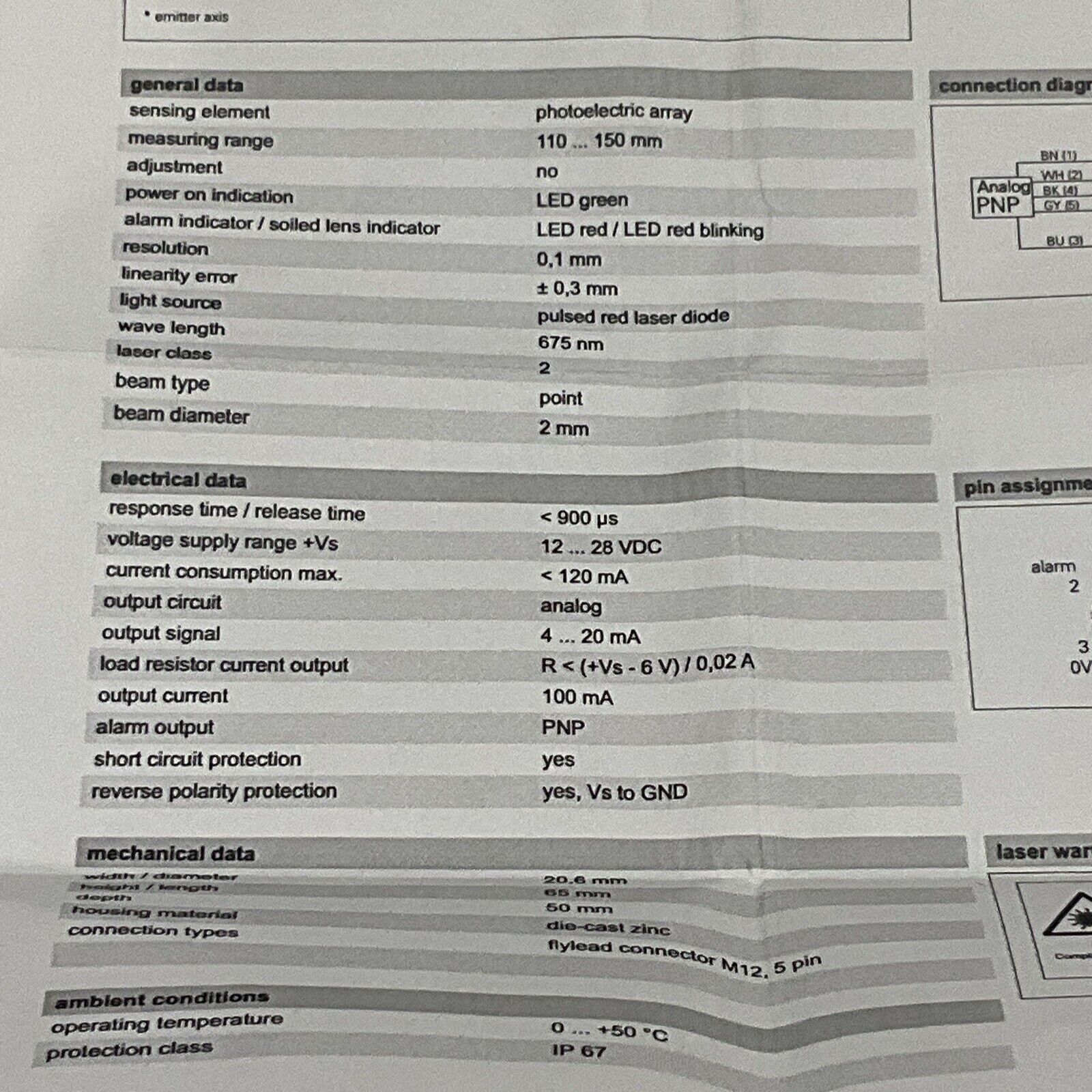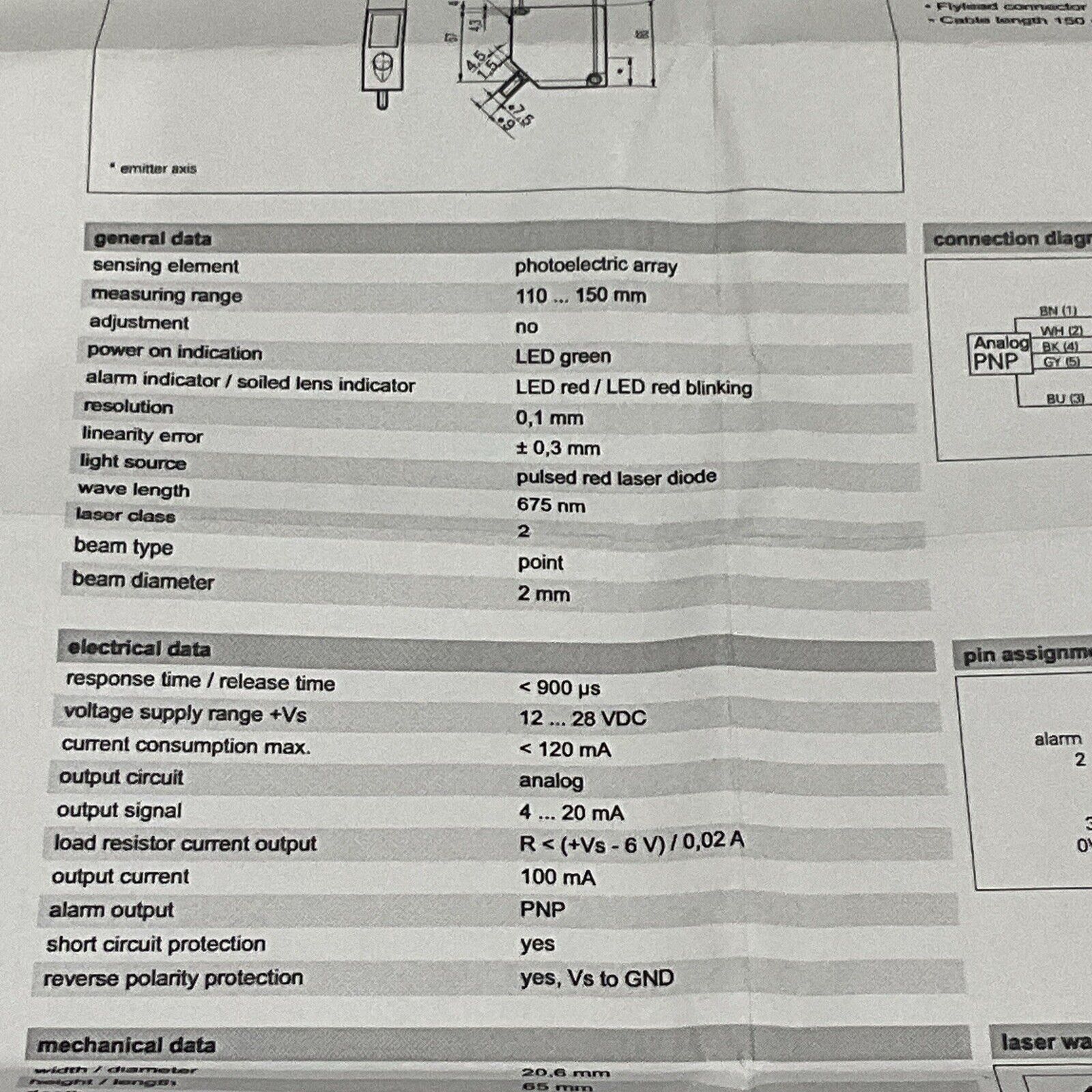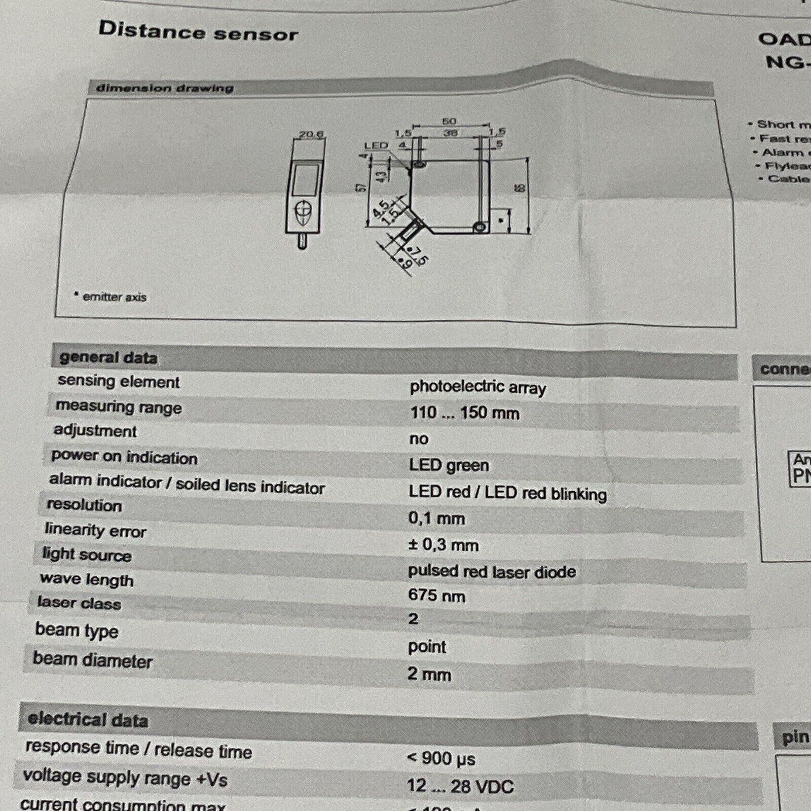 BAUMER OADM 20I44/406009A PHOTOELECTRIC DISTANCE SENSOR LONG 28V RANGE 675NM U3S