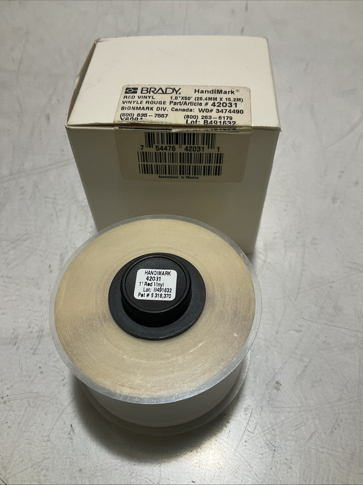 BRADY HANDIMARK Y6094-42031 RED VINYL ROUGE 1.0X50 25.4MX15.2 LABEL TAPE Z2M