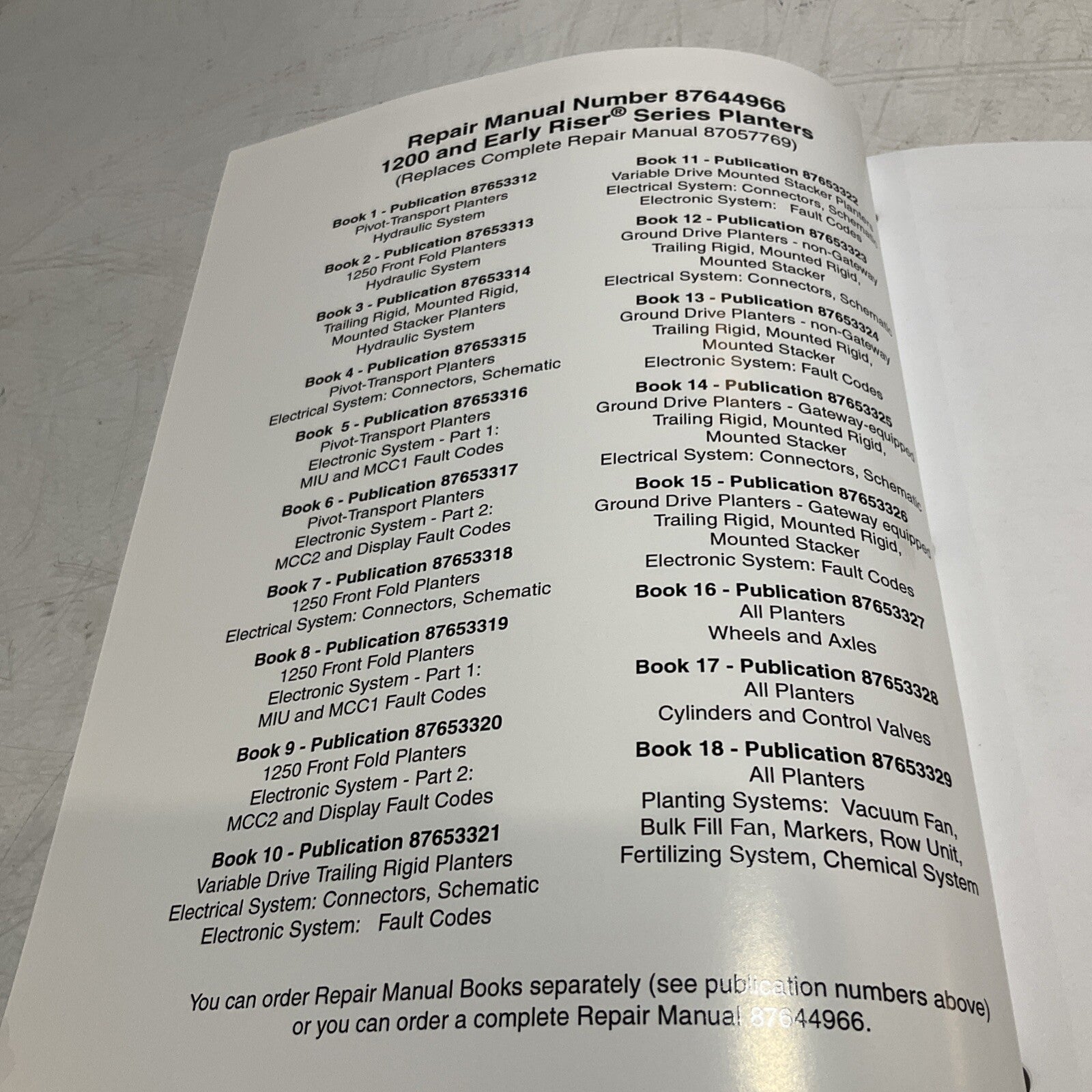CASE IH 87653314 1200 AND EARLY RISER SERIES PLANTERS REPAIR MANUAL BOOK 3 U3S
