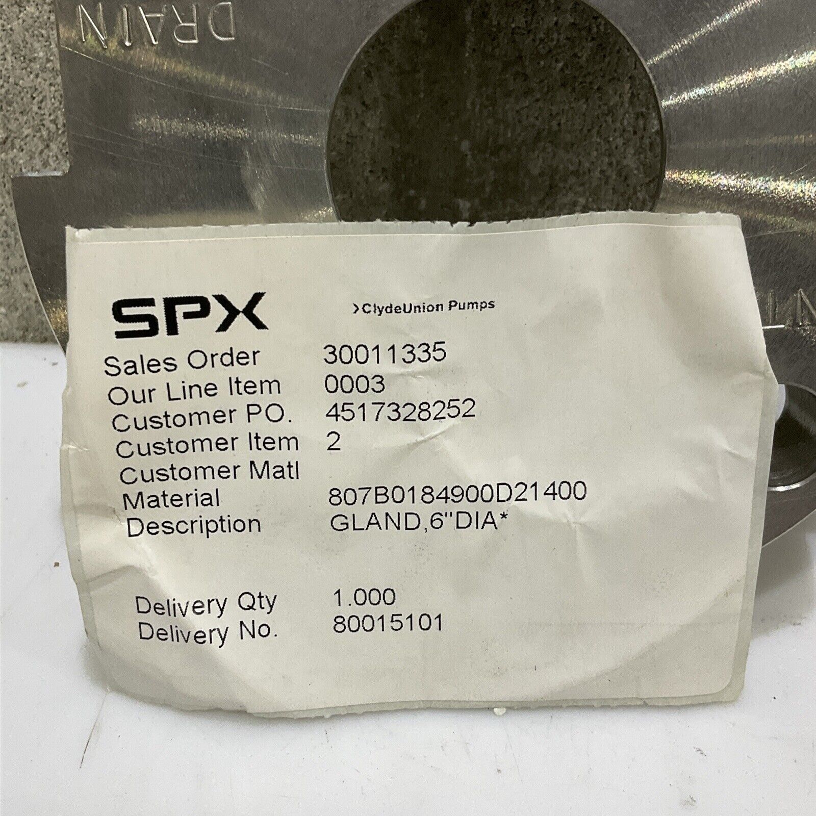 CLYDEUNION PUMP 007B0184900D21400 GLAND SEAL 6 IN OD 678.