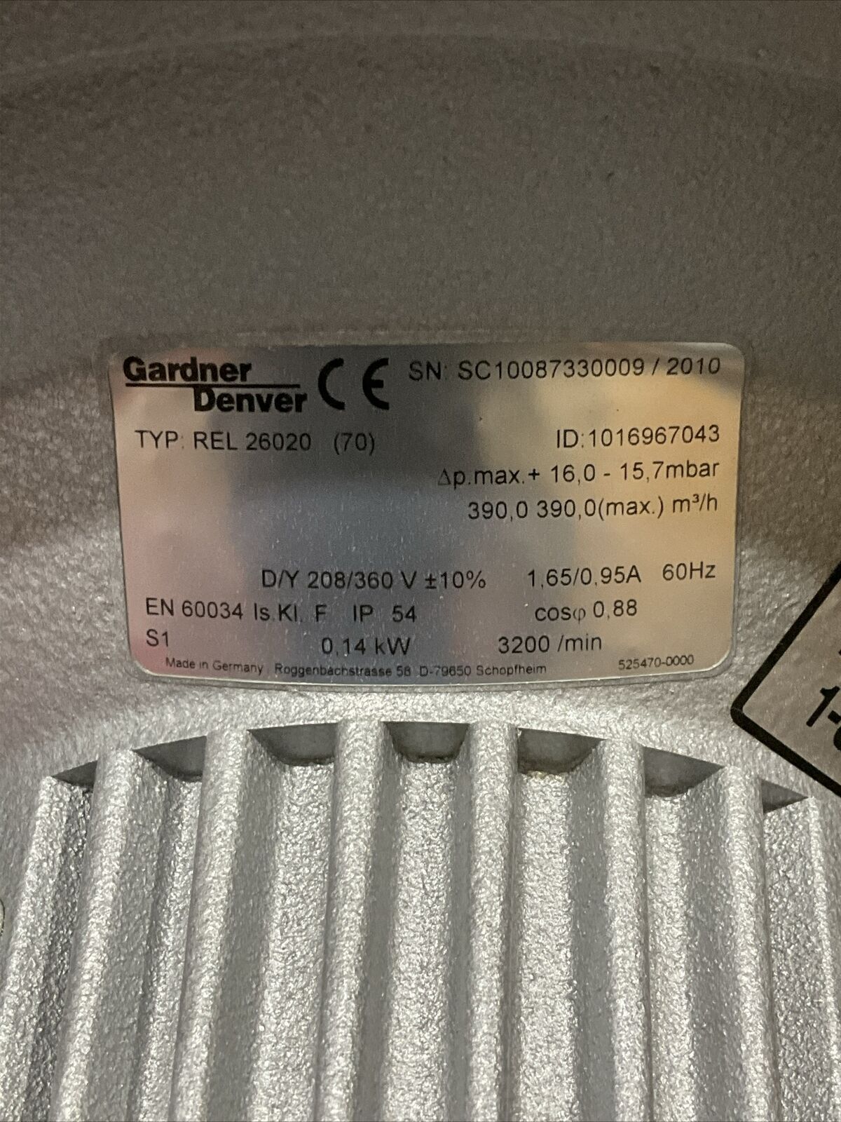 GARDNER DENVER REL 26020 (70) 101967043 2811267 WIRED BLOWER ASSEMBLY U3S