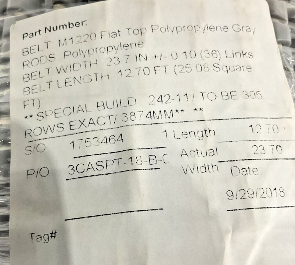 HABASIT AMERICA 162K585H02 BELTING MODULAR 3874MML U3S