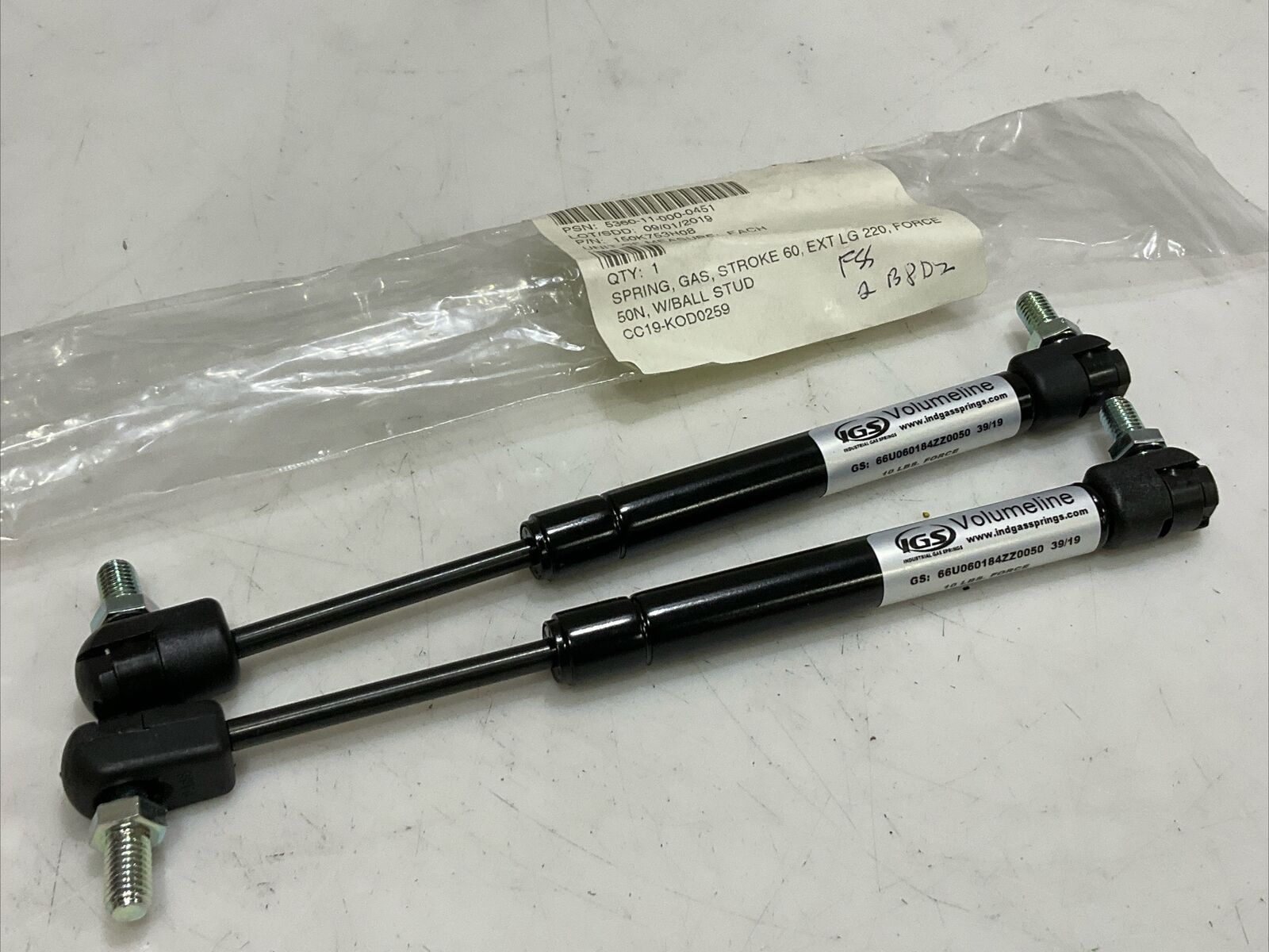 IGS VOLUMELINE 66U060184ZZ0050 HIGH PRESSURE GAS SPRING 10 LBS LOT OF 2 U3S