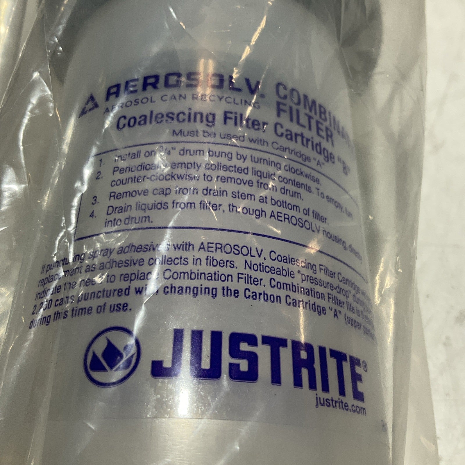 JUSTRITE AEROSOLVE V COMBINATION COALESCING ACTIVATED CARBON FILTER A & B U3S