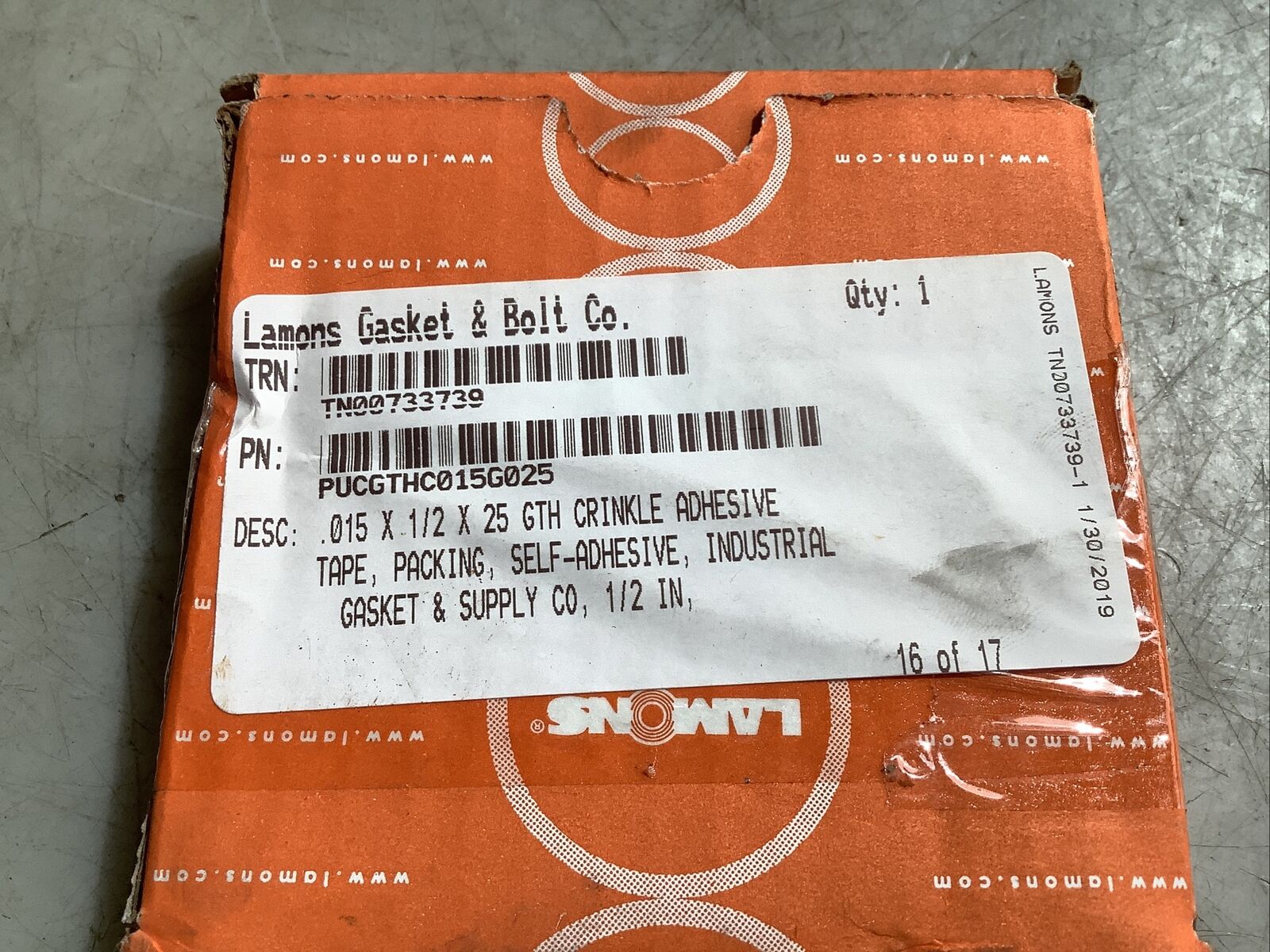 LAMONS PUCGTHC015G025 CRINKLE ADHESIVE TAPE 0.015IN X 1/2IN X 25' 678.