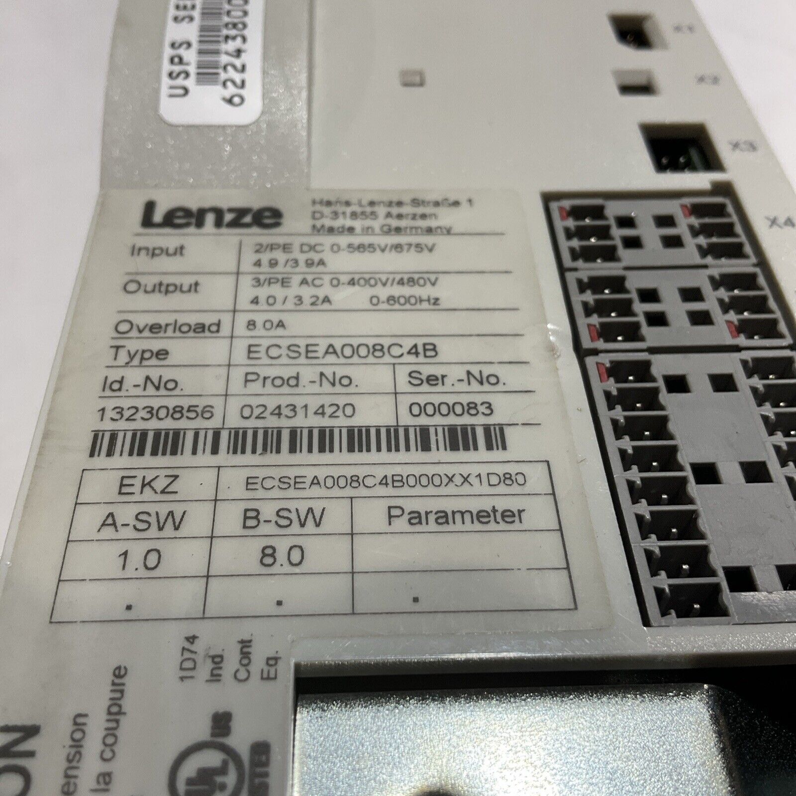 LENZE ECSEA008C4B VARIABLE FREQUENCY DRIVES U3Sused.untested. Box has been exposed to the elements. Product as pictured. All