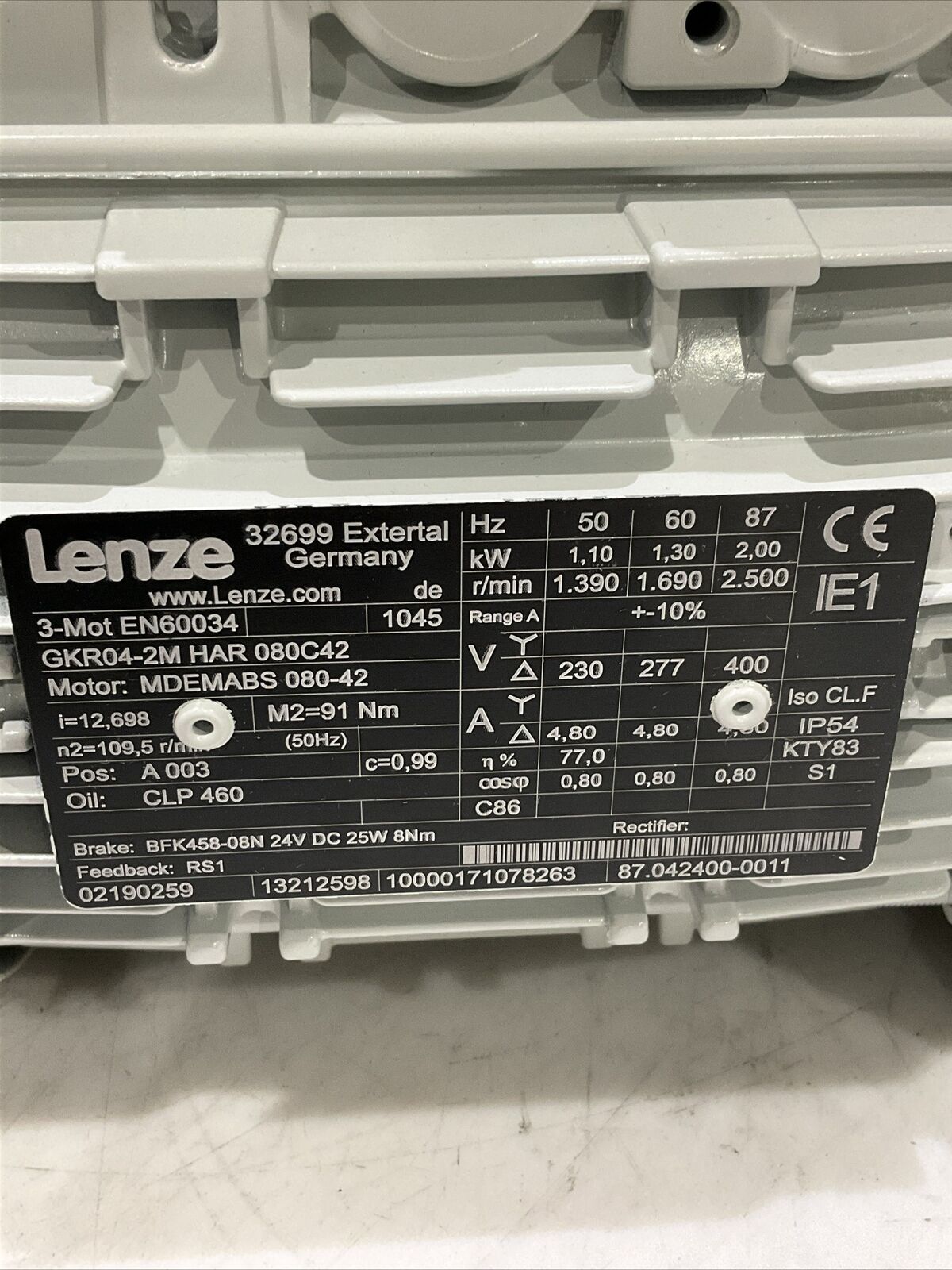 LENZE GKR04-2M HAR 080C42 MDEMABS 080-42 INDUSTRIAL MOTOR 60 HZ U3S