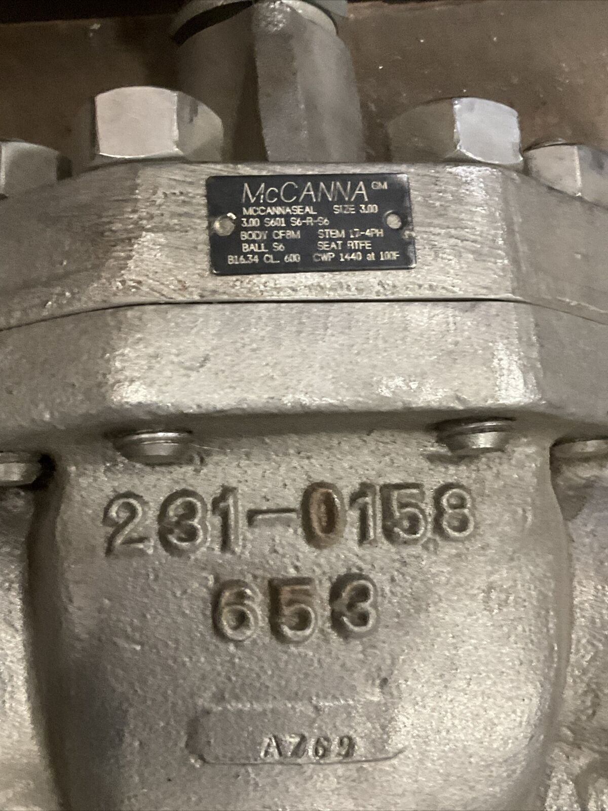 MCCANNA 3.00 S601 S6-R-S6 SEAL 373.VALVE, BALL, 3", SS, FLG, SA351 CF8M BODY, 600#, SA276 TP316L BALL, ANSI 600