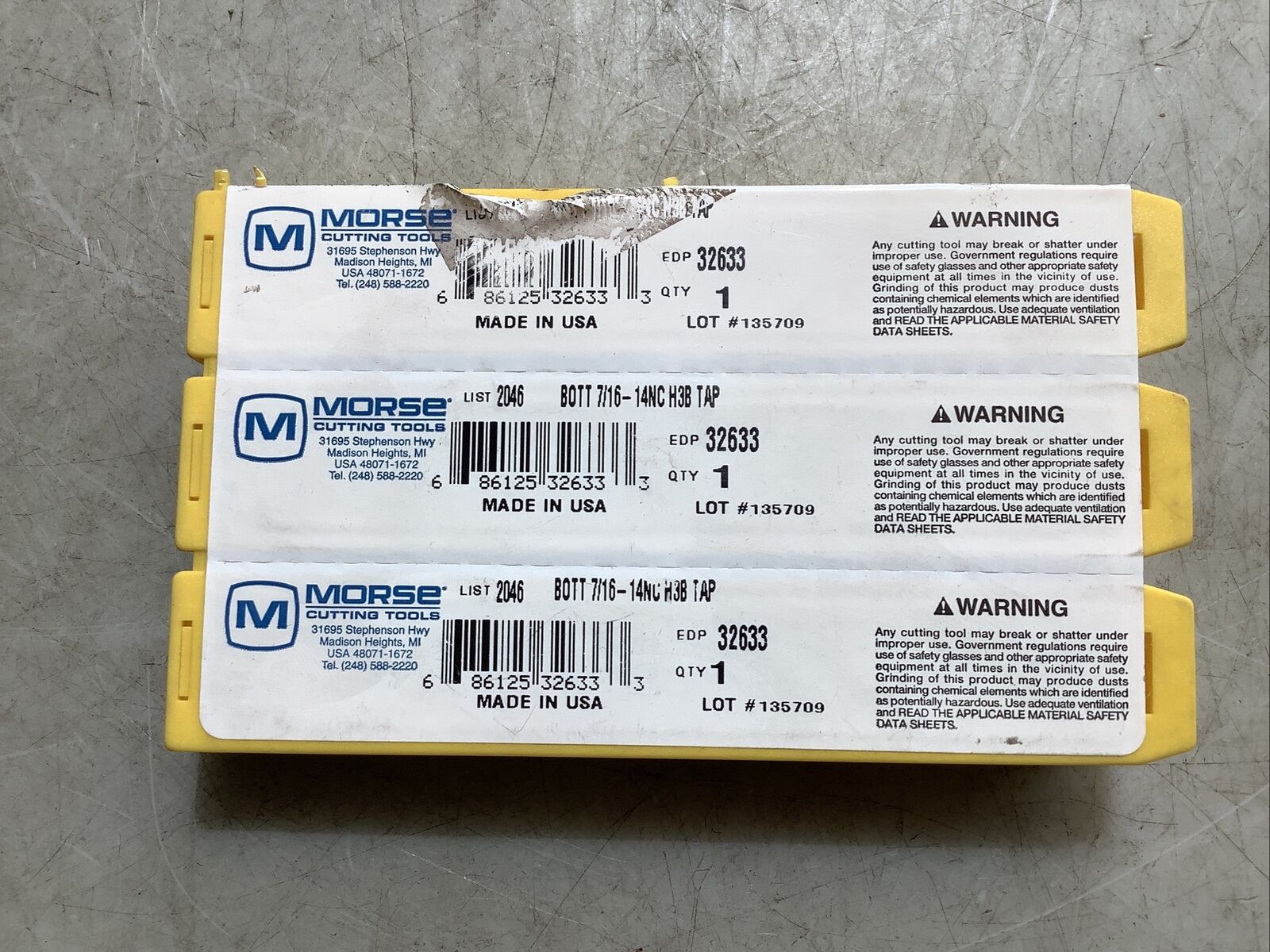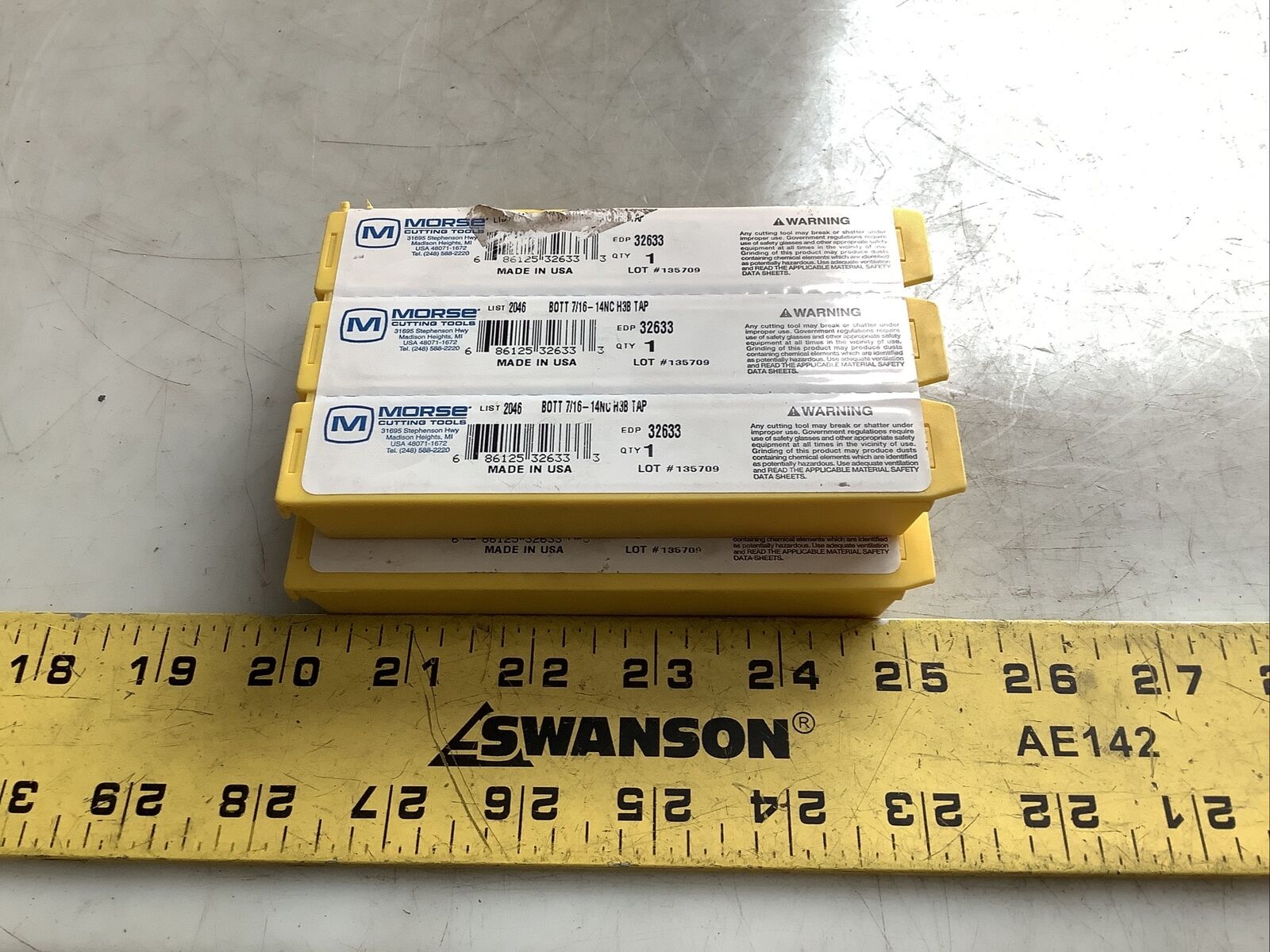 MORSE 32633 STRAIGHT FLUTE BOTTOMING TAP 7/16-14NC H3B 4FL 373 - LOT OF 7