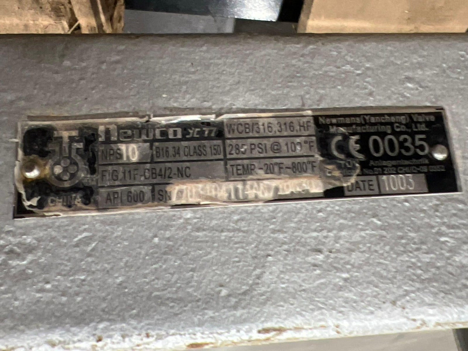 NEWCO NEWMANS 10" GATE VALVE FIG 11F-CB4/2-NC; B16.34 CLASS 150 V2M