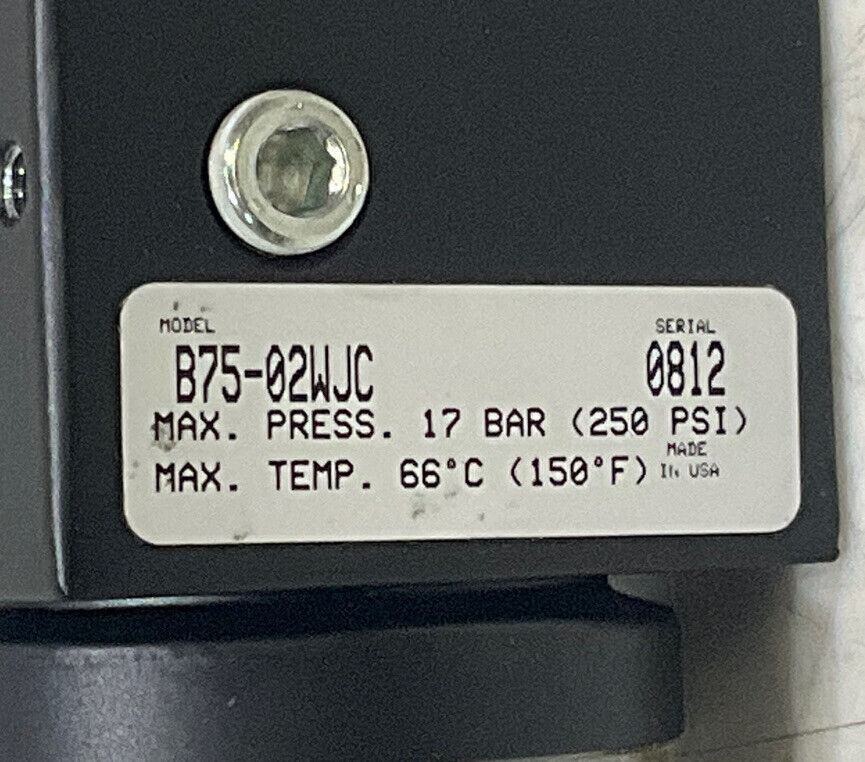 PARKER WATTS B75-02WJC 250PSI 125F MANUAL TWIST DRAIN 1/4” NPT FILTER REGULATOR U3S