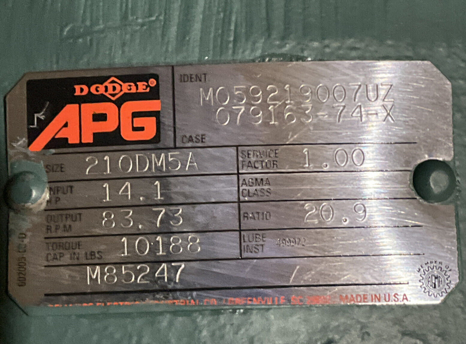 RELIANCE ELECTRIC 210DM5A APG REDUCER 20.9 RATIO U3S