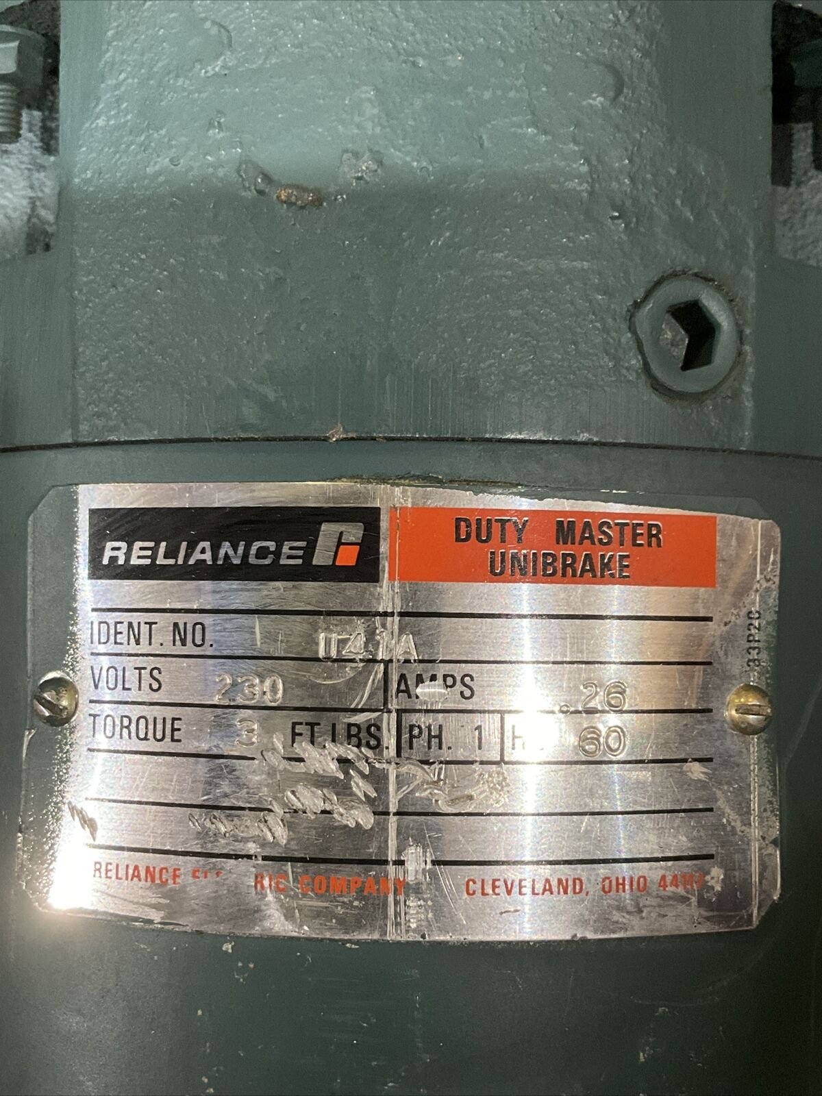 RELIANCE UNIBRAKE P48G3103M-KZ DUTY SPEED REDUCER W/ AC MOTOR 1750RPM U3S