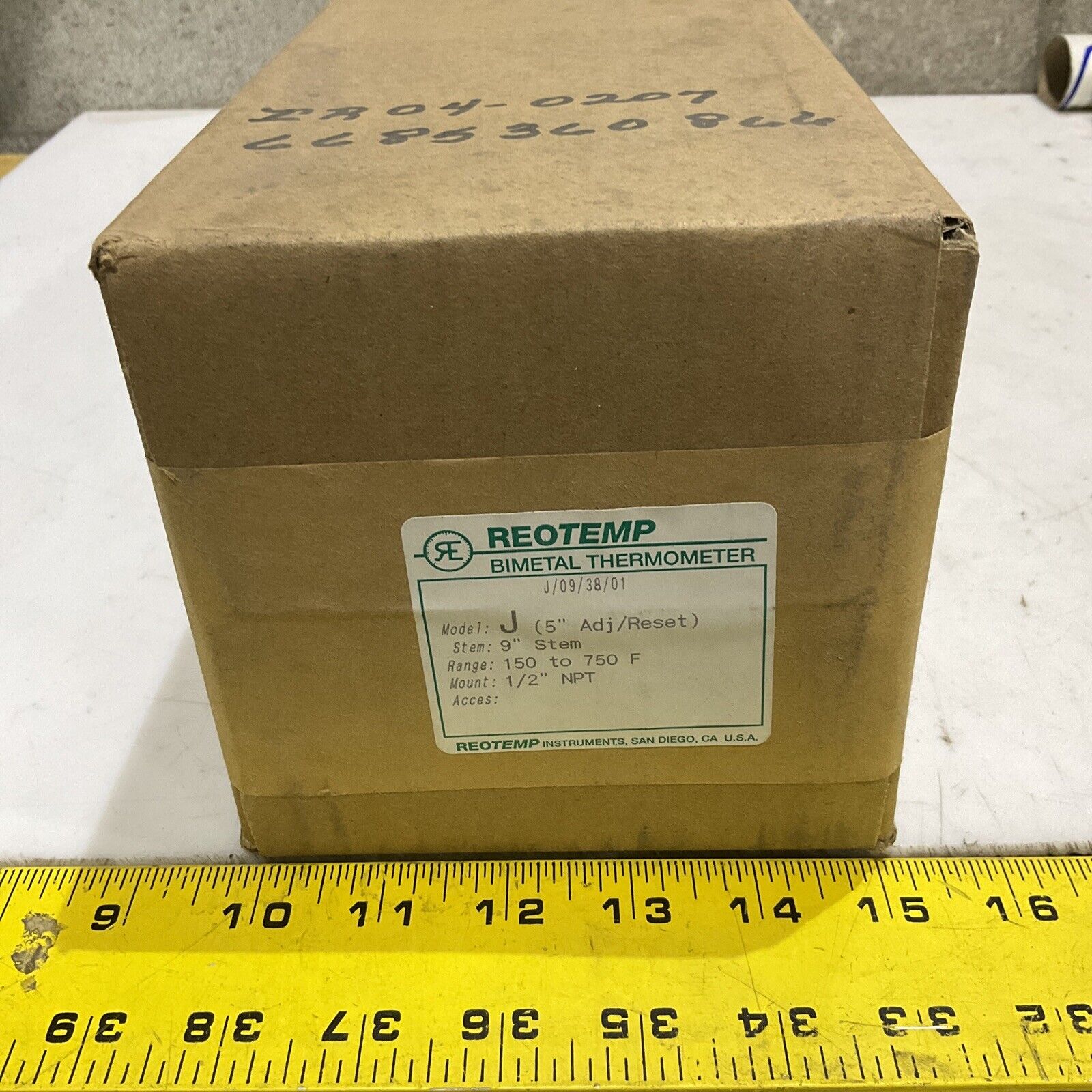 REOTEMP MODEL J BIMETALLIC THERMOMETER 9” STEM 150-750F 1/2” NPT 373.