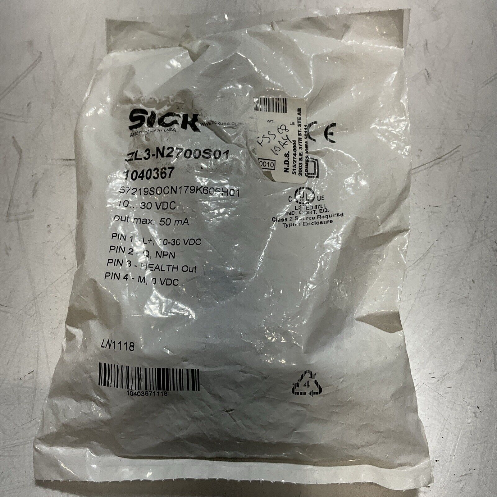 SICK ZL3-N2700S01 - 1040367 PHOTOELECTRIC REFLECTIVE SENSOR 30VDC LOT OF 2 U3S