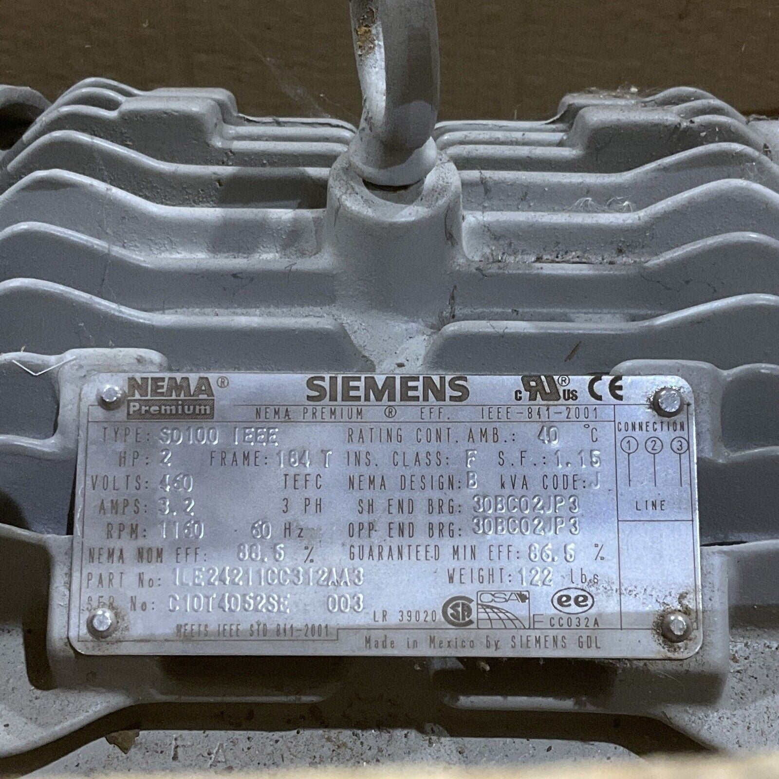 SIEMENS 1LE24211CC312AA3 MOTOR TYPE SD100 IEEE 60 HZ 480V 3 PH 1200 RPM 678.