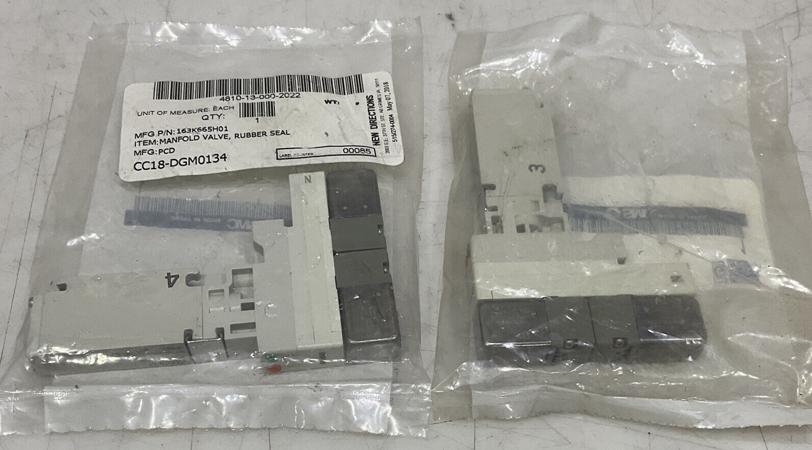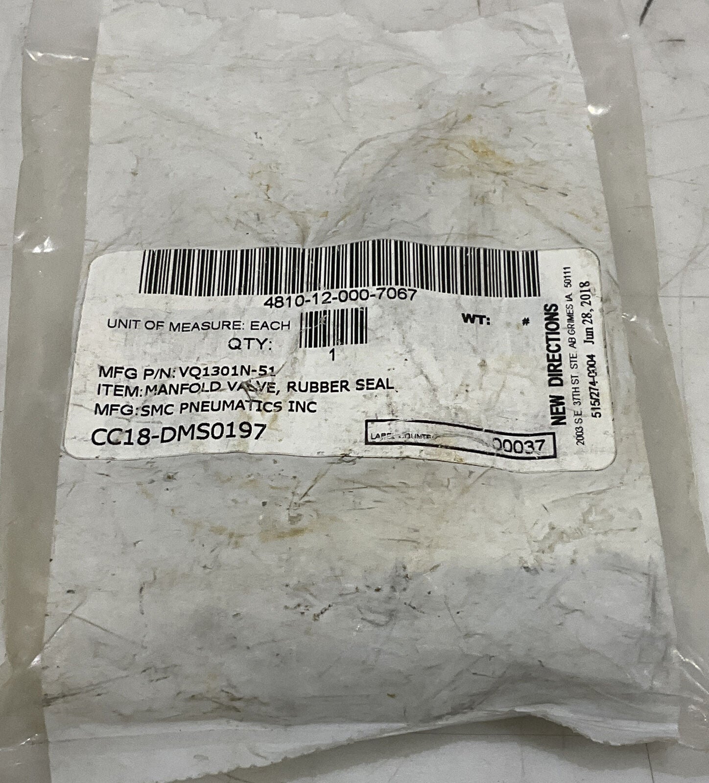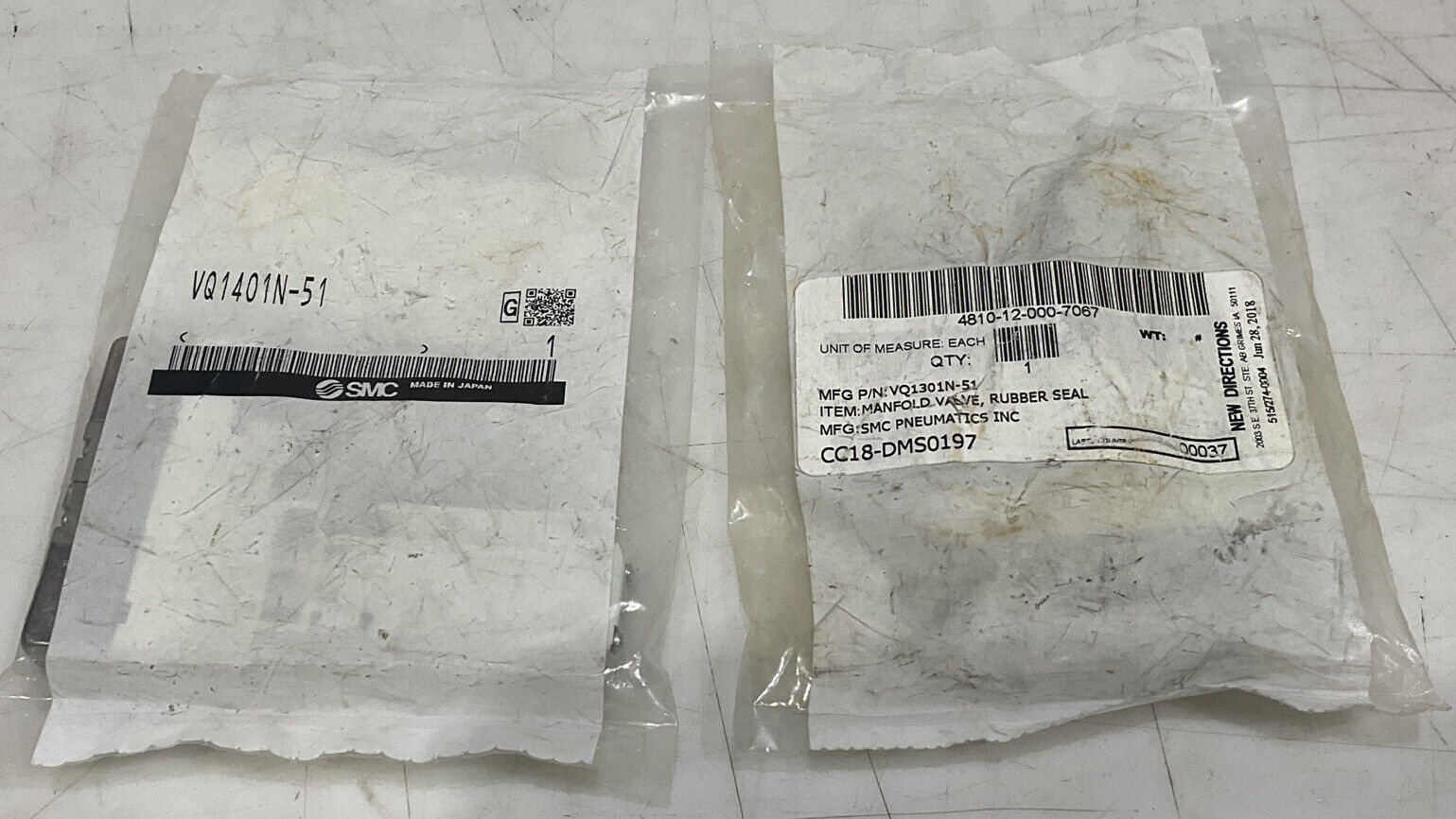 SMC VQ1401N-51/VQ1301N-51 RUBBER SEAL MANIFOLD VALVE LOT OF 2 U3S
