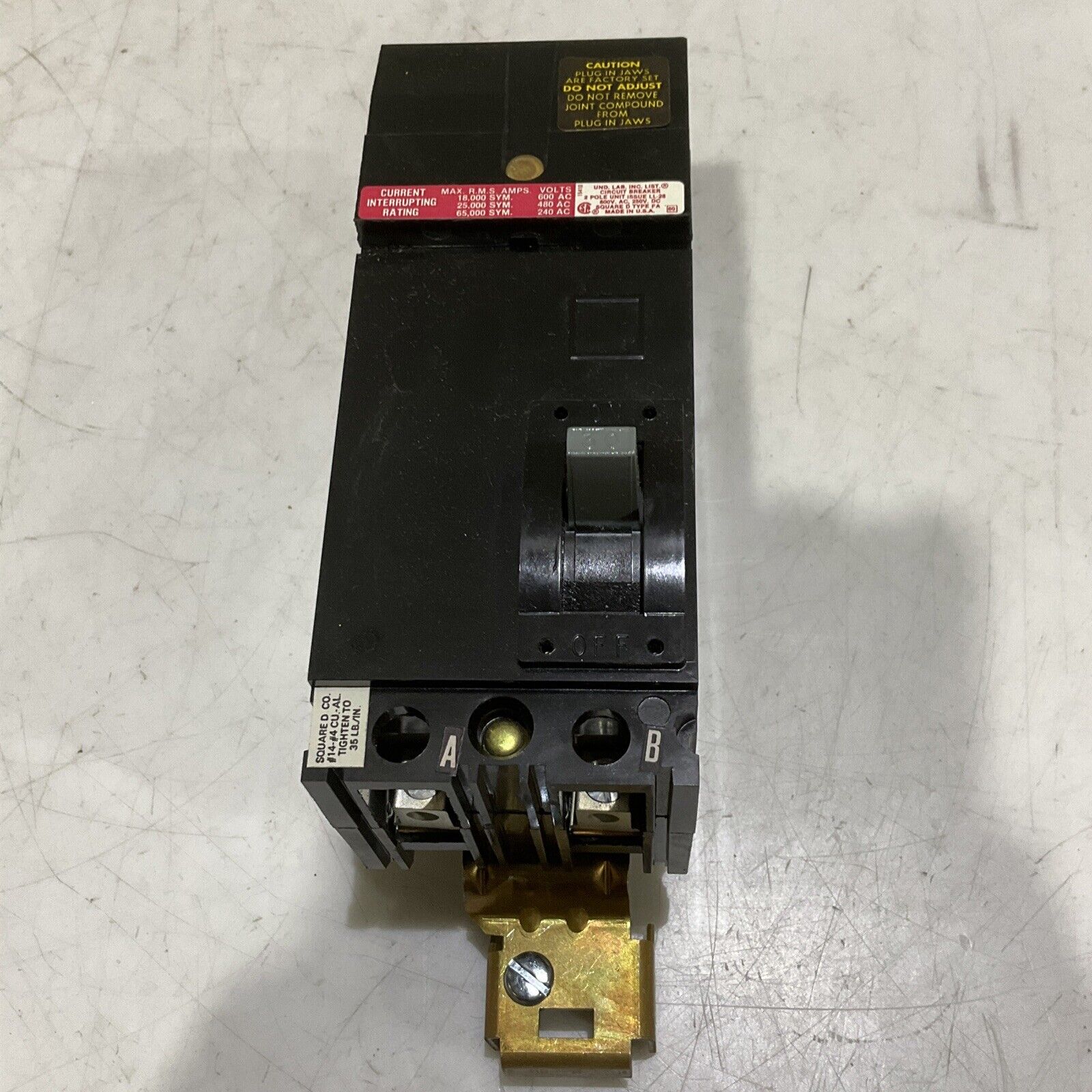 SQUARE D FH26030-AB 25473 CIRCUIT BREAKER 600/250V 2P 30A I-LINE I-75,000 373