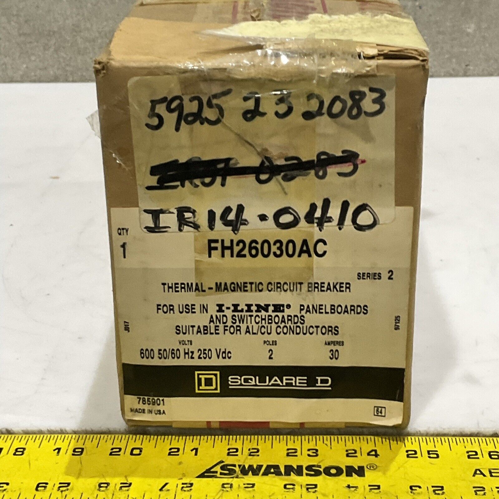 SQUARE D FH26030AC THERMAL-MAGNETIC CIRCUIT BREAKER 600V 50/60HZ 250VDC 373