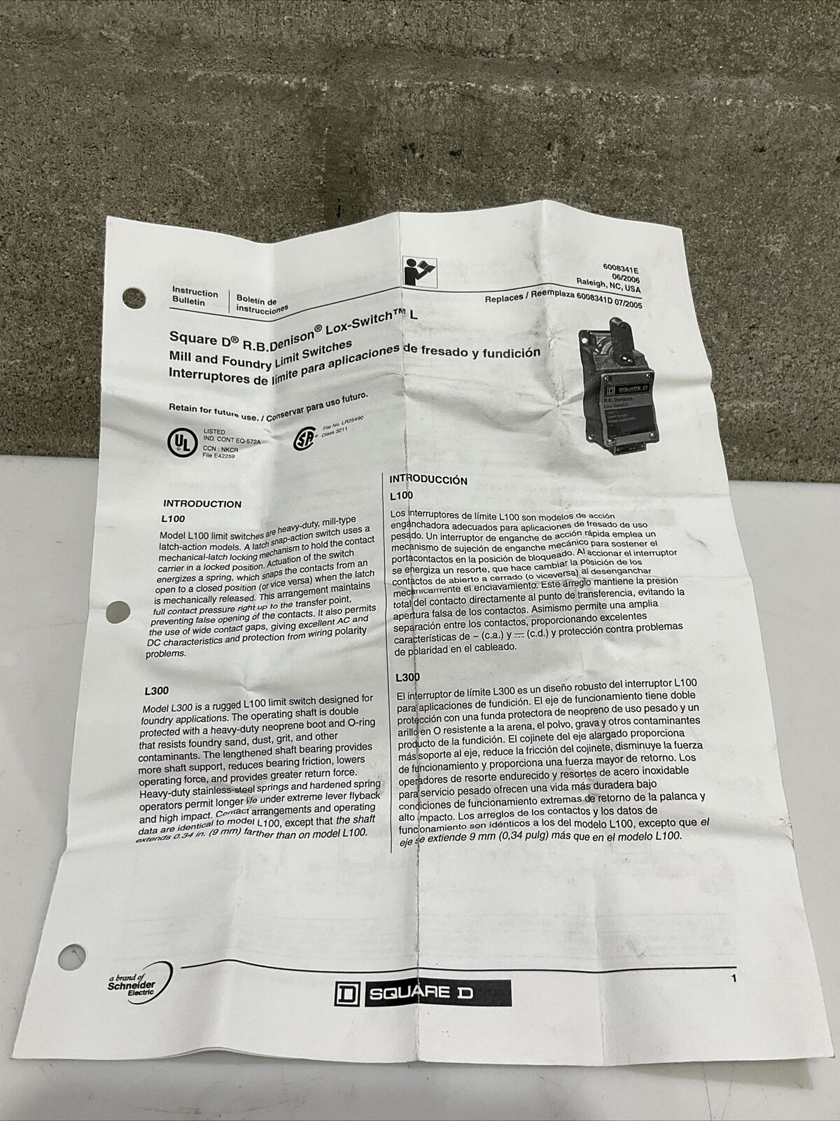 SQUARE D L100WTL1M13 LIMIT SWITCH 373.