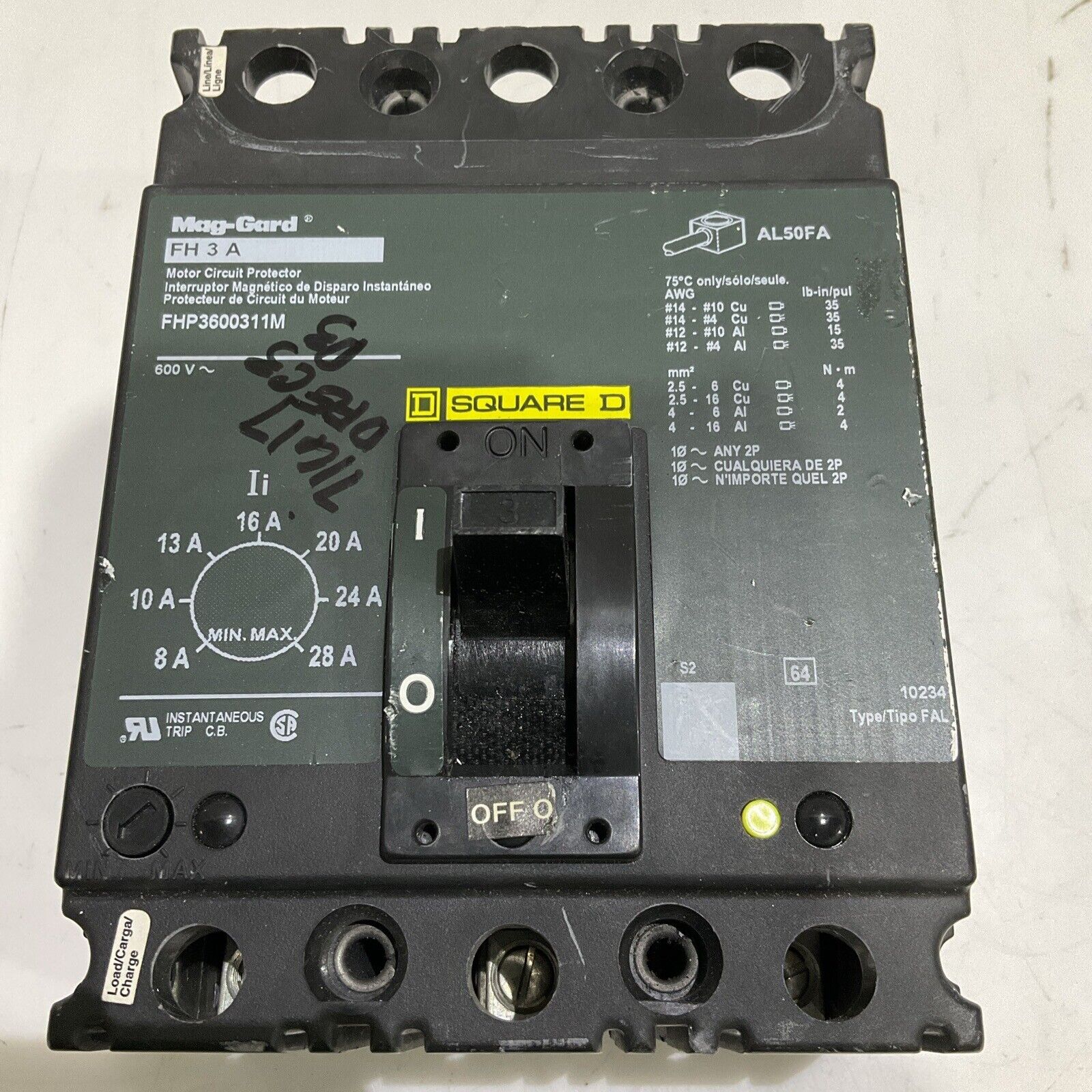 SQUARE D MAG-GARD FH 3 A FHP3600311M CIRCUIT BREAKER 600V U4M