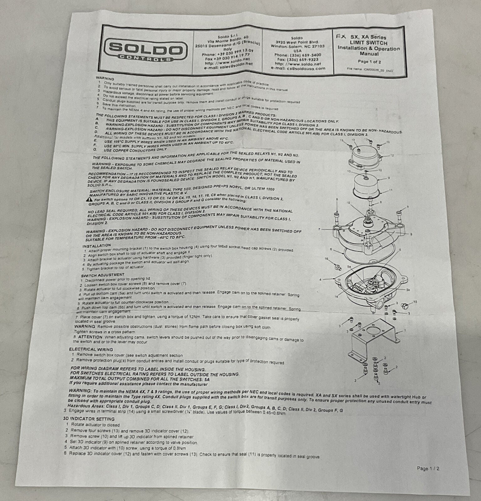 SOLDO CONTROLS EX11D2SBKN EXPLOSION PRO INDICATOR 373.