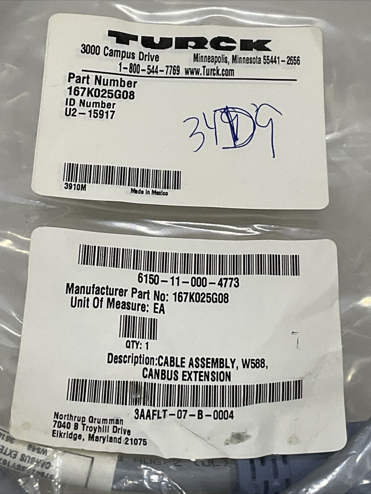 TURCK U2-15917 CANBUS EXTENSION W588 CABLE ASSEMBLY U3S