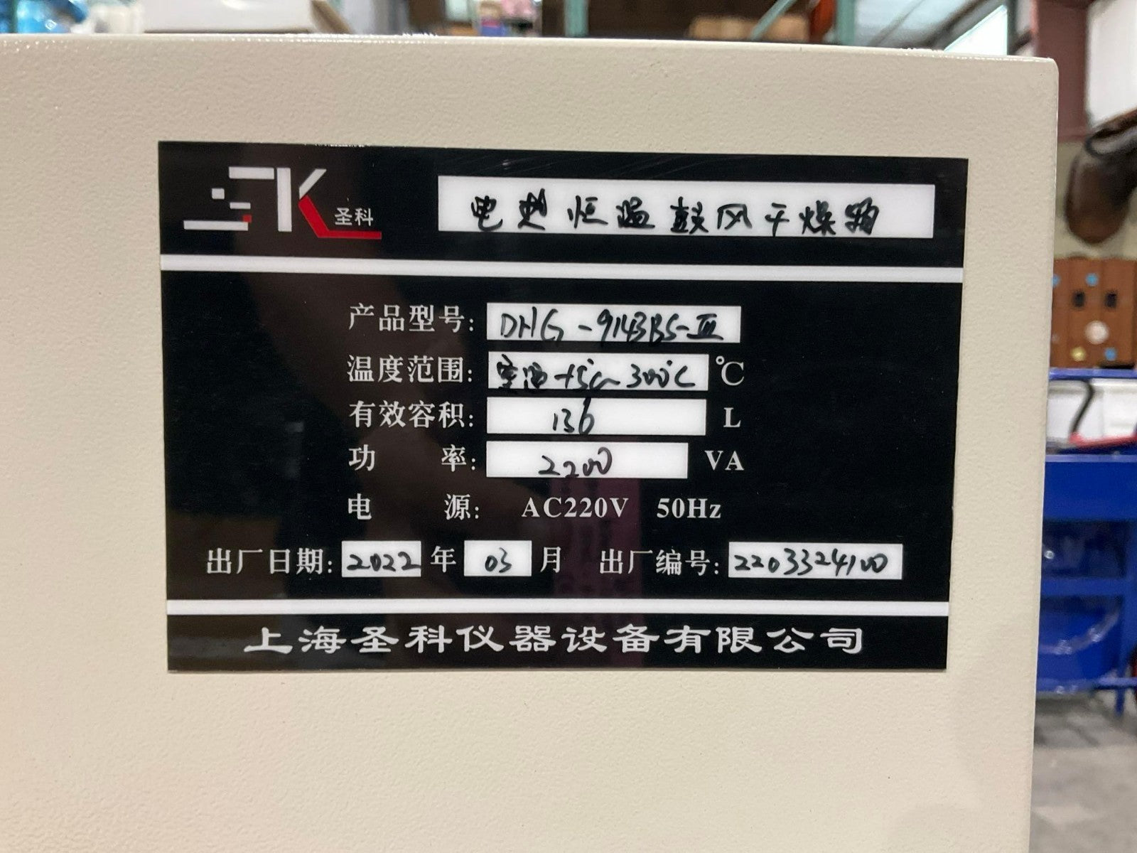 UNUSED 2022 ELECTRO-THERMOSTATIC BLAST DRYING OVEN DHG-9143B5-BLOOD