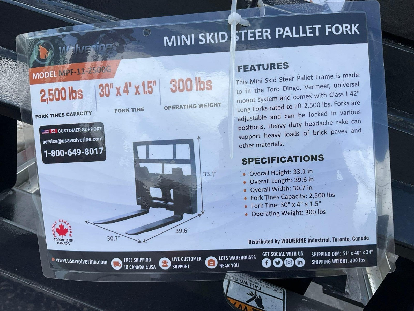 UNUSED 2024 WOLVERINE MINI PALLET FORK ATTACHMENT MODEL MPF-11-2500G FOR SKID
