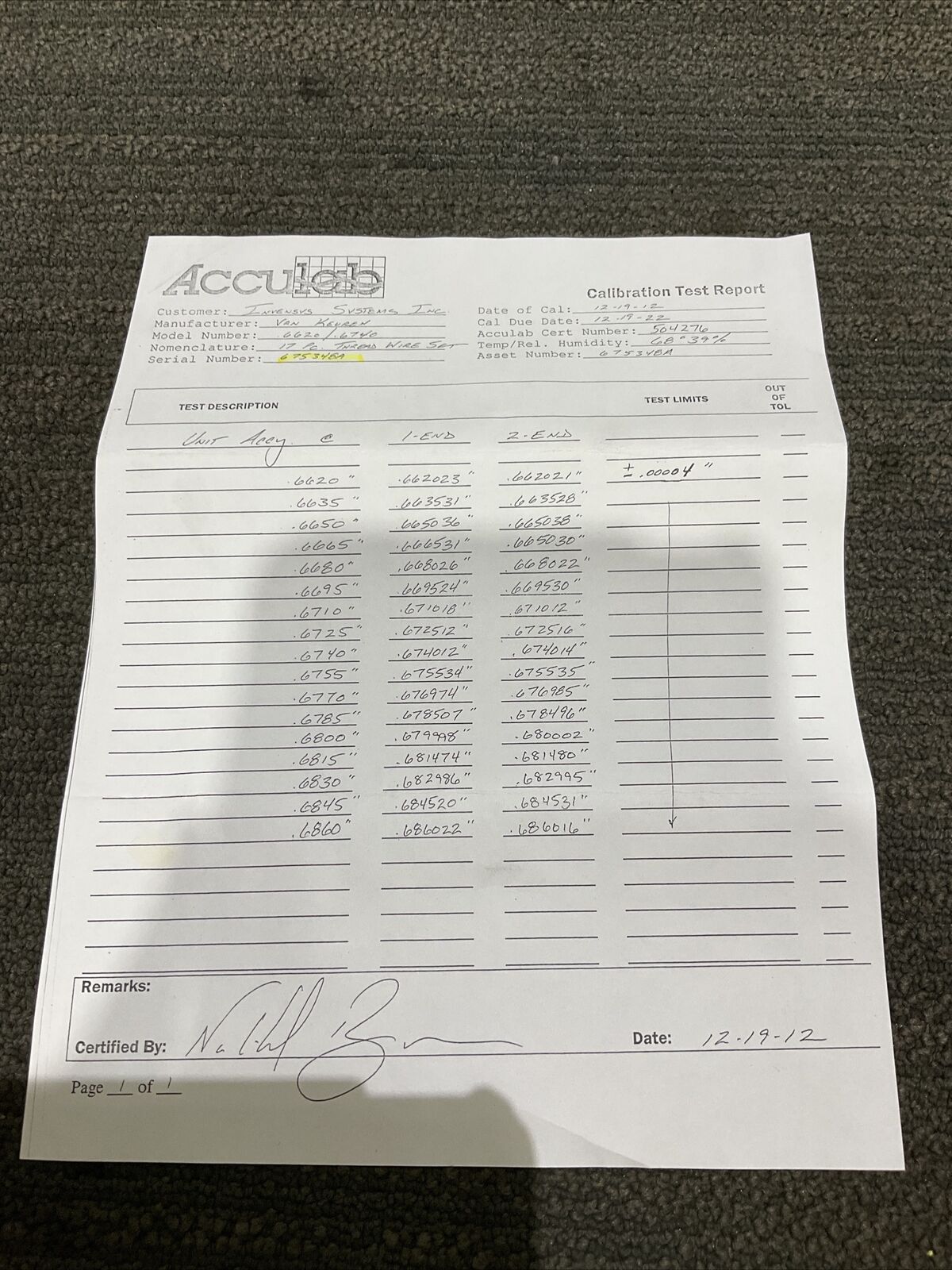 VAN KEUREN .6620-.6740 17 PIECE THREAD WIRE SET 333.