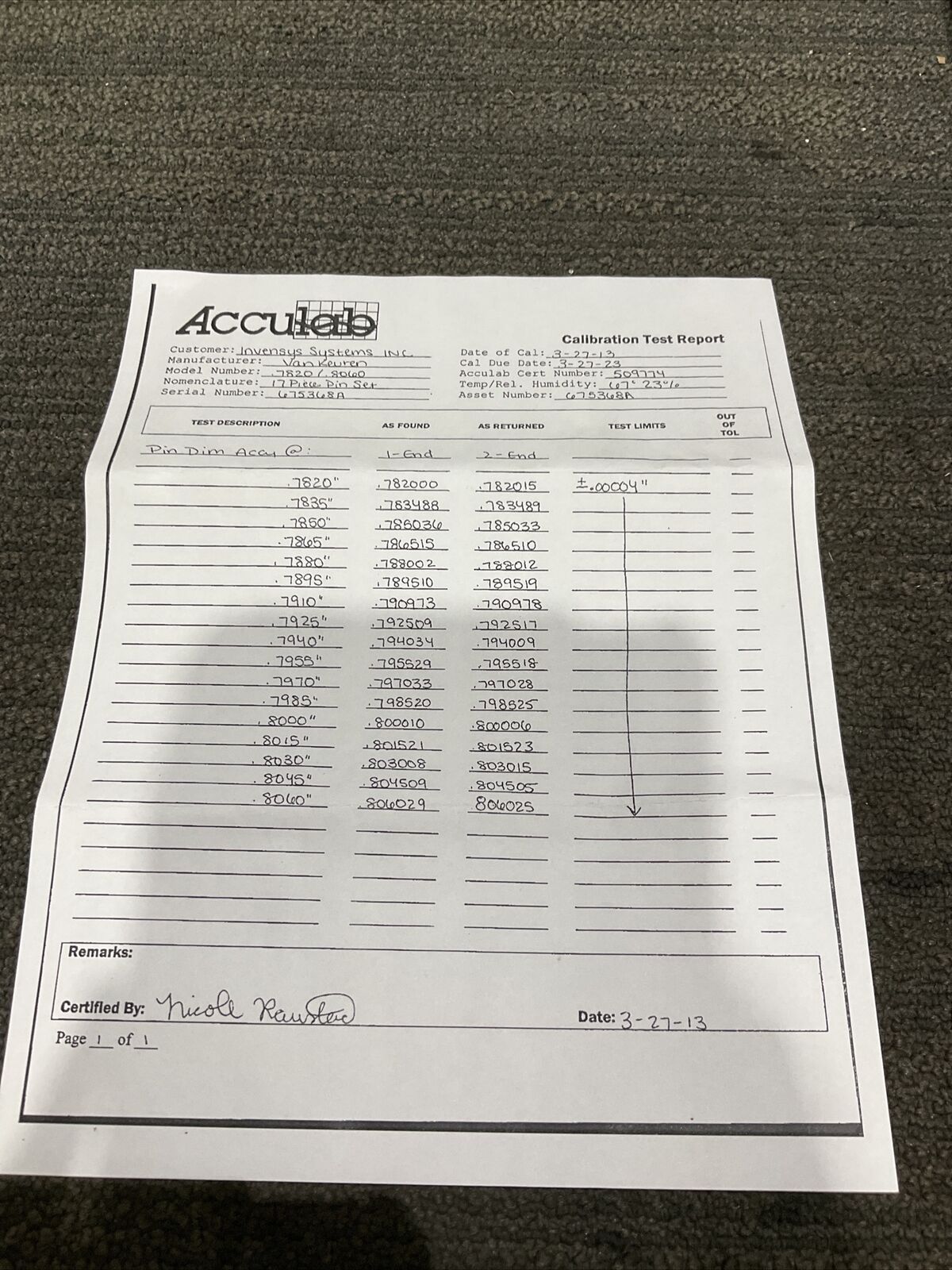 VAN KEUREN .7820-.8060 17 PIECE PIN GAUGE SET 333.